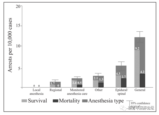 图3 心脏骤停数据,按麻醉类型细分,按预后细分,单位为每10,000例心脏骤停(改编自Nunnally等人[7])