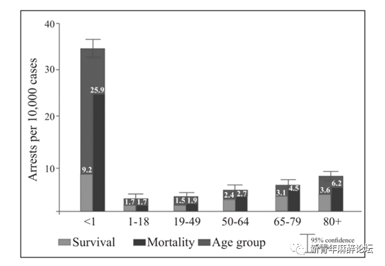欧洲复苏理事会(ERC)在2015年的指南中报告了更高的发病率:他们围手术期心脏骤停的总发病率范围为4.3例/万例到34.6例/万例[10]。这一广泛的范围反映了病例组合(一些包括新生儿和/或心脏手术)和“围手术期”定义的不同[10]。高危群体的发病率更高,如老年人,据报道其发病率为54.4例/万例[11],以及在接受急诊手术的患者中,发病率为163例/万例[10,12]。