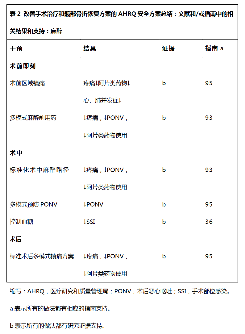 关注髋部骨折手术麻醉——医疗研究与质量管理局(AHRQ)为改善外科治疗与康复的安全计划进行的循证回顾
