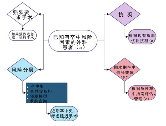 对高卒中风险患者的最佳围手术期治疗始于术前评估和知情同意过程。患者调查数据表明,严重的并发症,即使不常见,也应该讨论。往往低估了那些卒中风险高的人倾向卒中的风险。因此,对高危患者进行适当的咨询似乎是有必要的,以提高风险意识并改善知情同意过程。前面讨论的风险预测模型可以用来估计非心脏手术患者的风险。在接下来的段落中,我们将回顾基于证据的降低风险策略(图1)。