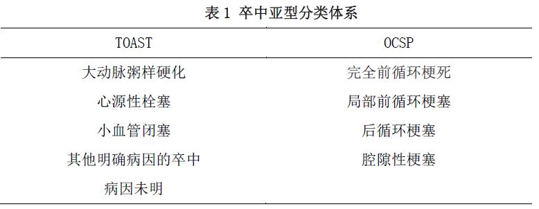 缺血性卒中的主要原因包括栓塞、血栓形成和灌注减少。在此背景下,建立了分类系统,目的是根据病因和解剖学对急性缺血性卒中进行分类。组织10172急性卒中治疗试验(TOAST)提供了一个在临床试验中一致定义的卒中亚型体系。该系统将缺血性卒中分为大血管和小血管两类,并将心源性栓塞的原因与动脉粥样硬化血栓形成区分开来。牛津郡社区卒中项目(OCSP)提供了一个基于急性卒中的解剖位置和自然病史的分类系统。TOAST系统的一个优点是对病因进行了更精确的分类,而牛津郡的标准更注重解剖位置。然而,与TOAST系统相比,牛津郡系统确实提供了额外的解剖学细节(例如,前部、部分前部、后部)(表1)。