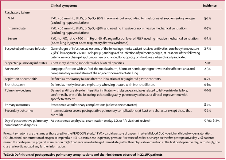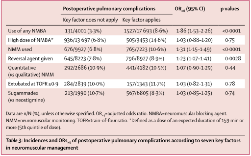 Post-anaesthesia pulmonary complications after use of muscle relaxants (POPULAR): a multicentre, prospective observational study.