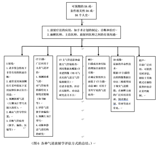 寻找完美的放射学参数以预测DA的工作仍在进行中。没有任何一个模态和参数是绝对可靠的。麻醉医师之间的放射学基础知识以及放射科医生和麻醉医生之间的协调将减少由于气道管理困难而引起的发病率和死亡率。麻醉医师应尽可能利用为其他目的(例如手术分期和计划)所做的影像资料,以制定有效的气道管理计划。