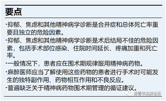 本综述将讨论常见精神疾病诊断对围术期结局的影响,以及在围术期具有不同考虑和相互作用的精神病药物主要类别。