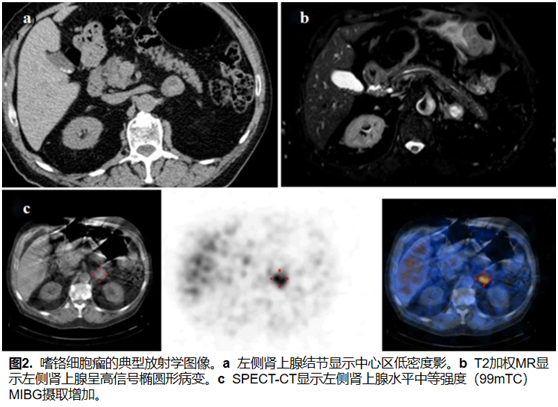 一般来说,只有在生化证实嗜铬细胞瘤或PGLs诊断后才应进行放射成像。尽管如此,对于怀疑患有头颈部PGLs(HNPGLs,通常为非儿茶酚胺分泌)和与SDHx突变相关的PGLs患者,应在生化检查之前或同时进行放射性检查。