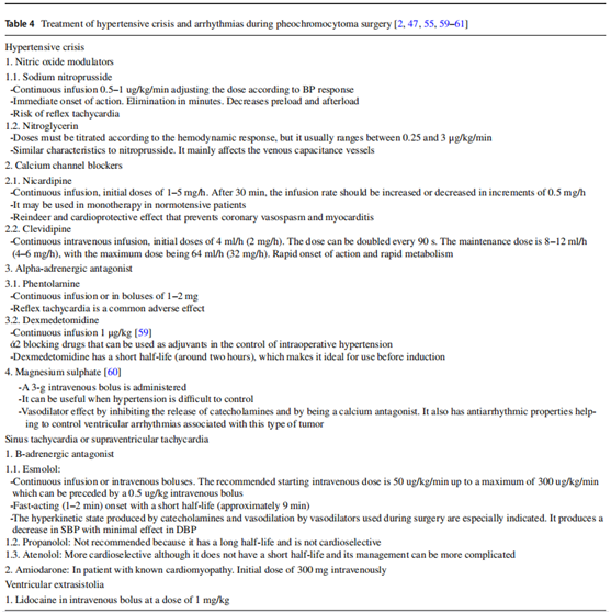 (Araujo-Castro M, Pascual-Corrales E, Nattero Chavez L, Martínez Lorca A, Alonso-Gordoa T, Molina-Cerrillo J, Lorca Álvaro J, Mínguez Ojeda C, Redondo López S, Barberá Durbán R, Polo López R, Moreno Mata N, Caballero Silva U, Pian H, Ruz-Caracuel I, Sanjuanbenito Dehesa A, Gómez Dos Santos V, Serrano Romero AB. Protocol for presurgical and anesthetic management of pheochromocytomas and sympathetic paragangliomas: a multidisciplinary approach. J Endocrinol Invest. 2021 Jul 25. doi: 10.1007/s40618-021-01649-7.)