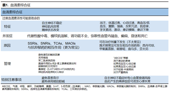 SSRIs和SNRIs可以在整个围术期持续使用,但其都与5-羟色胺综合征风险相关。