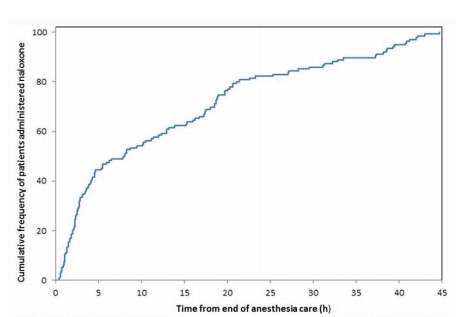 图1. 从麻醉结束到纳洛酮给药的时间。经 Weingarten 等人的许可。