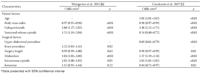 表1. 麻醉恢复期间与呼吸抑制相关的患者和手术特征
