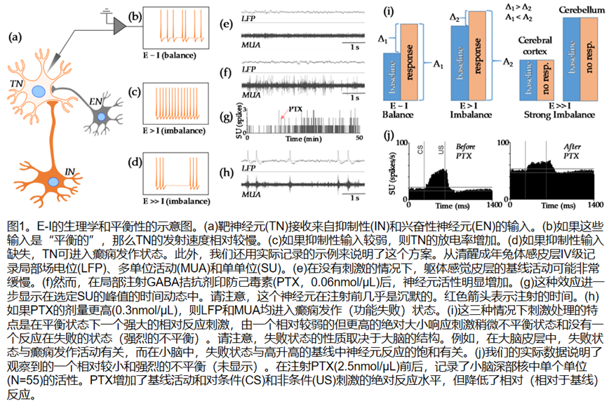 图1显示了E-I平衡的生理基础(图1a-d)。简单地说,一个小水平的E-I失衡会导致基线活动的升高。因此,这导致了相对反应的减少,而绝对反应的幅度的增加(图1e-g)。如果E-I失衡更为严重,则会产生癫痫发作(图1h),或由于基线高度升高而导致的神经元反应饱和(图1i、j)。