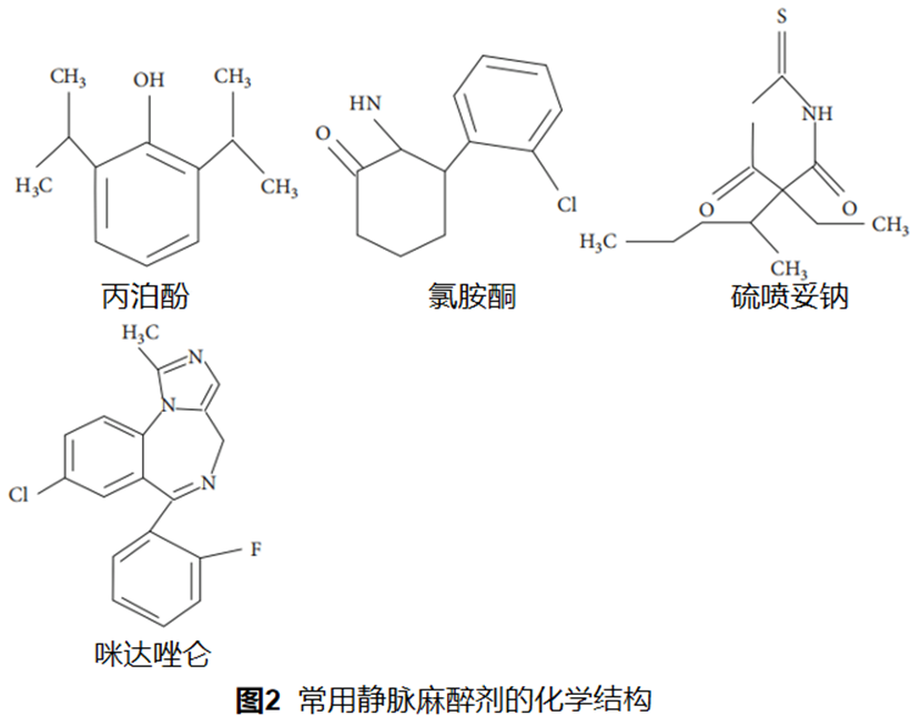 图2为本文所讨论的静脉麻醉剂的化学结构。