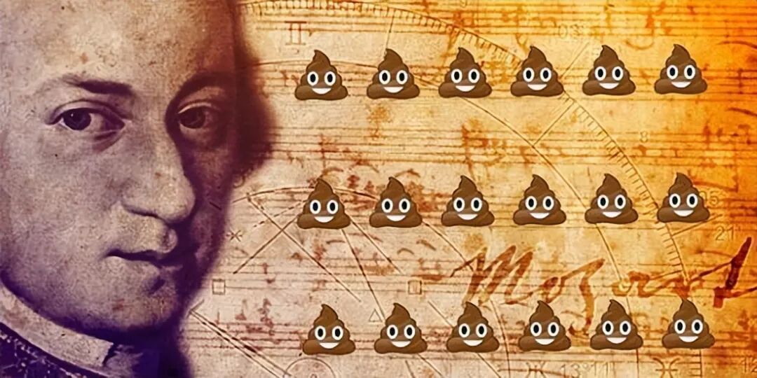 相比于莫扎特演奏的那些高雅音乐,莫扎特的嗜好可以说是让一个变态都觉得变态的程度。虽然我这么说你可能不信,但莫扎特确实是重度“恋屎癖”患者,太毁三观了,还钟爱粗鄙之语,甚至还曾写过几首让人难以接受曲名的歌曲,感觉莫扎特要是搁到现在,就凭他的变态和对屎的热爱,肯定能在重金属音乐领域称王称霸,当然也有人说莫扎特这是天真的表现,不过是具有了那个时代大多数人都有的粗鄙和脏口,当时的社会风气就是如此,不过我还是无法理解。