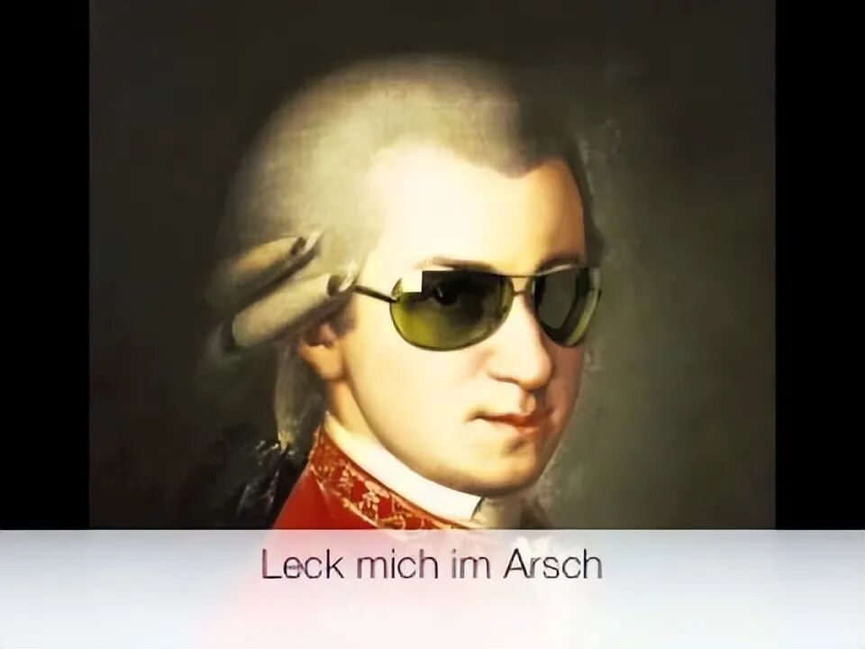 莫扎特写过这么两首音乐,而且还是卡农曲,一首是“K.231/382c:Leck mich im Arsch”,另一首则是“K.233/382d:Leck mir den Arsch fein recht schön sauber”,它们的意思翻译过来分别是“舔我的屁股”以及“又好又干净地舔我的屁股”(这翻译得已经很文雅了)。
