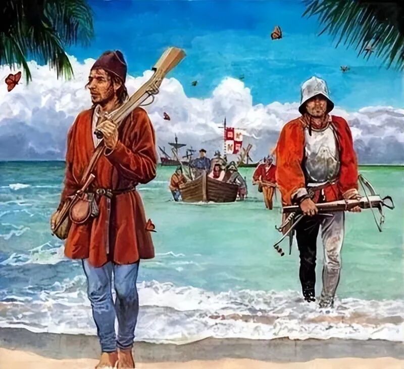 为了让此次探险能够圆满成功,西班牙国王给出了最为慷慨的报酬与装备条件,在探险船队的配置上下足了成本,国王为探险舰队准备了许多武器装备,包括大量火炮、炮弹和火药,另外火绳枪、弩、刀剑、长矛和盾牌等武器也一个不缺,用于和印第安人展开坦率交流。