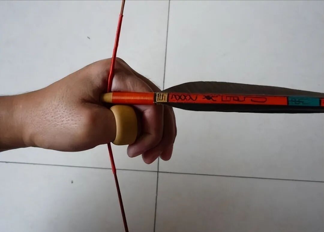 但是请注意,只有小磅数的弓才可以用这种捏住箭尾的方式拉弓射箭,其他但凡磅数高一点的弓都不能采用这种方法射箭,因为古代许多弓箭的拉力实在是太大了,只靠弓手的拇指和食指根本就捏不住箭。