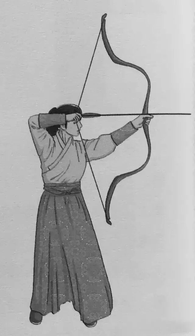 很多现代人一拿起弓箭,准备拉弓射击时,会自然而然地用食指和拇指捏住箭矢的尾部和弓弦,往后拉,这样当然能拉开一些弓,但是当他们用这种拉弓方式来面对真正的硬弓时,他们就会发现自己怎么也无法将弓拉开,即使他们有很大的力气。