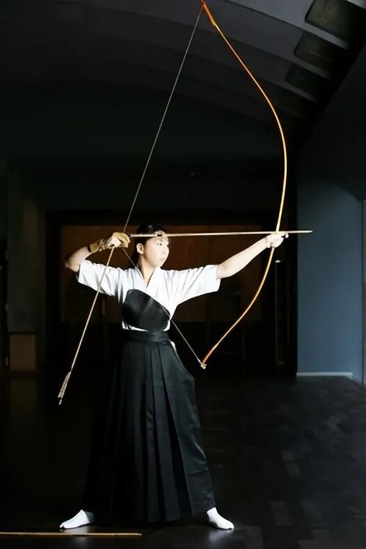 双臂力量向下,并最终达到沉肩的状态,而左手向前用力,右手向后用力,以此将弓顺着力量地走向拉开。