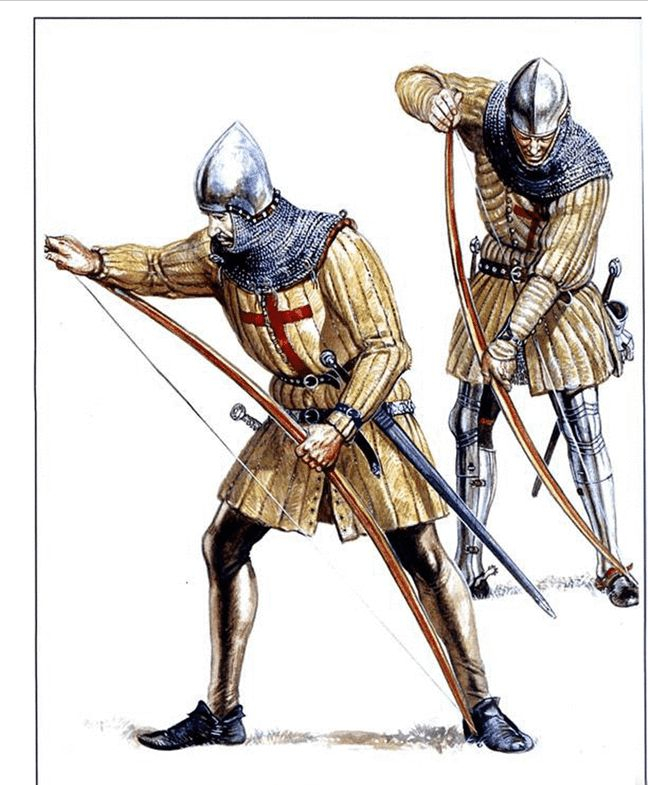 在法国的各处战场上,长弓兵们以少胜多,为英国赢得了一次又一次的辉煌胜利(当然不只是长弓兵们的功劳),比如著名的克雷西战役(1337年)中,英军就以非常低的伤亡率击败了数倍于己的法军。