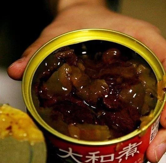 而相比于战事不紧急时的伙食情况,日军在战斗紧急时实际的野战口粮方面就又是一番景象了。野战状态下,每名日军士兵还可以携带“牛肉大和煮”罐头以及军用“森永饼干”充饥。日军的牛肉大和煮很有名,这种罐头的主要原料是牛肉或者鲸鱼肉,再加上姜、酱油和砂糖等调料熬制而成,味道不错,营养也很好,非常受日军和缴获他们的八路军将士们欢迎。