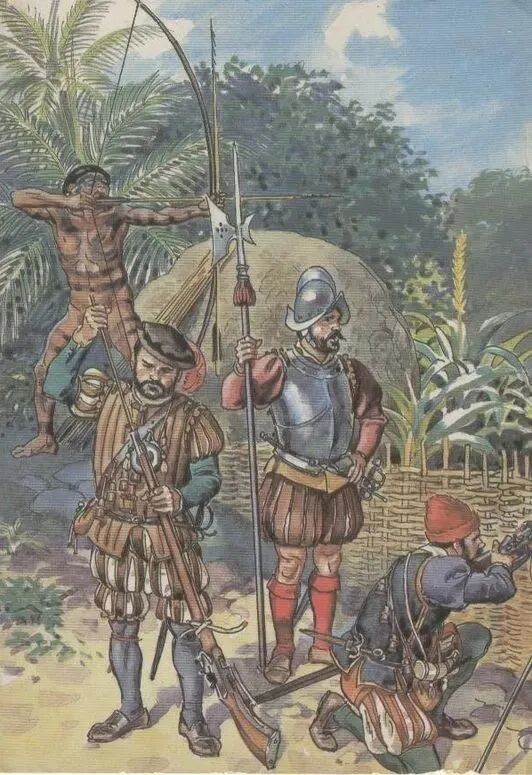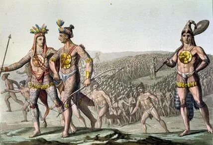 这些印第安人本就对外来者抱有很深的敌意,更别说之前已经有西班牙人祸害过他们,使得他们对西班牙人非常敌视了。因此在发现外敌入侵时,印第安人便马上聚集了起来,在几位“战争酋长”的带领下,几个印第安人部落聚兵一处,纷纷划着独木舟守在探险队的必经之路上,或是躲在沿岸的各个隐蔽处伺机袭击,然后一等巴尔沃亚带领船队经过,便立即冲出,将探险队团团围住,随后便发起了进攻。