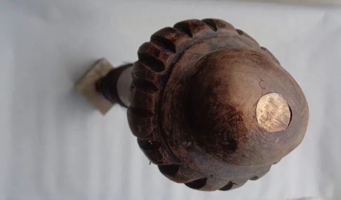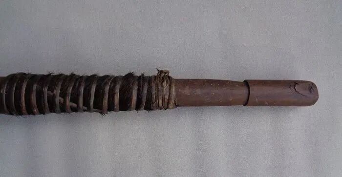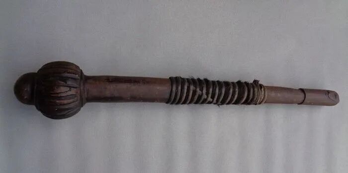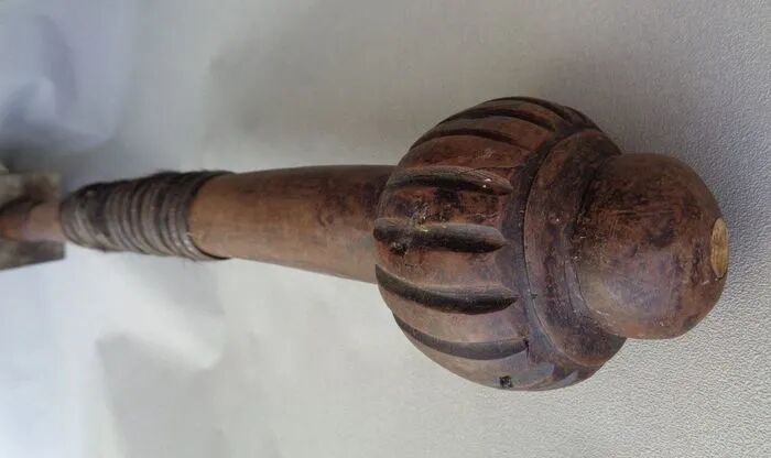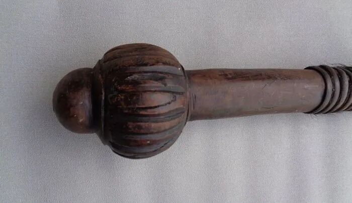 这是一把来自巴布亚新几内亚的“棒槌”,材质为质地坚硬的硬木,长约62厘米,锤头直径约为7厘米。