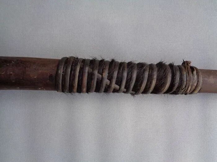 这种棒槌是当地土著人的传统武器,可以用来手持挥击,也可以投掷伤人。对于没有铁器,不懂冶金技术,连石器都缺少的巴布亚新几内亚的土著部落来说,铁木制作的棒槌绝对是他们日常生活和战争中最为重要的工具和武器。