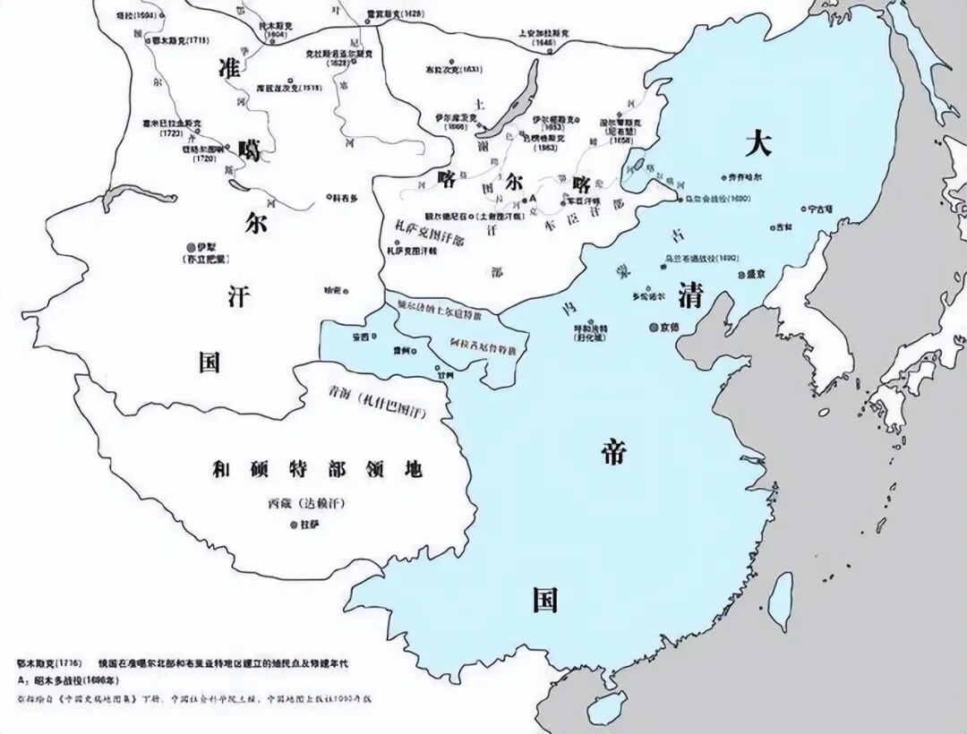 等到清廷历经康熙、雍正和乾隆三代君主,彻底清算了准噶尔汗国以后,准噶尔汗国原先的大部分疆域就都落入了清廷手中,蒙古、新疆、西藏、青海这几大块儿归于清廷实控的过程中,总是能够看到准噶尔汗国的身影,等于是准噶尔人为清廷做了大好的嫁衣裳。