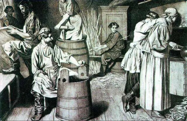如果农奴还会些手艺,那他还要上交手工艺品,铁匠要为主家锻造刀剑、长矛,木匠要制作一些木板、木桶和家具,车匠要制作马车,至于农奴的妻子也不能闲着,她们每年都要为主人织布裁衣,供其穿戴或是贩卖。