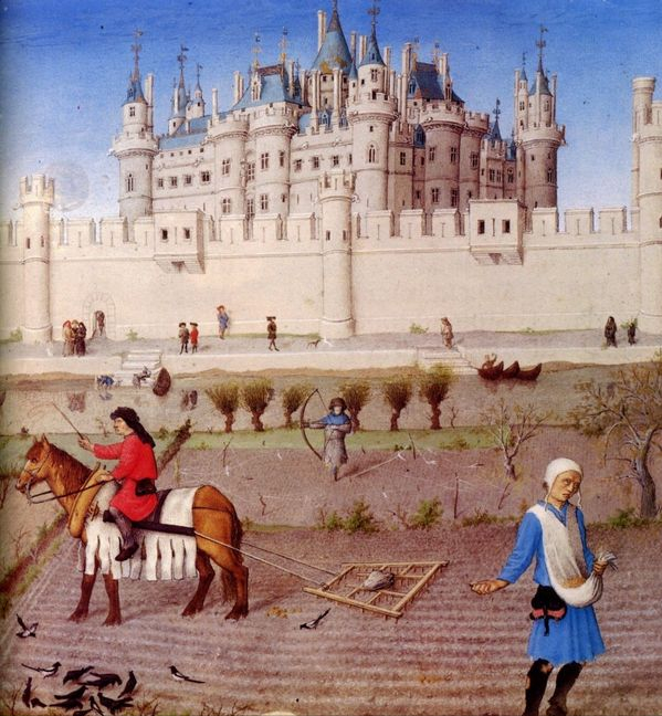 当然更多的人则要给马匹和公牛套上轭,再系紧犁头和犁刀,然后到耕地里辛苦犁地。由于要驱使牲畜按照命令工作,农奴们必须要不停地叫喊,嗓子喊哑是常有之事,我想农奴在工作的时候一定会一千次诅咒土地和领主、管家一起沉入河底吧。
