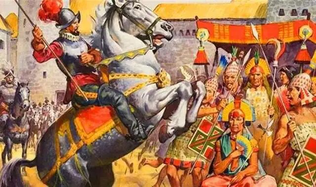 这就导致当哥伦布在1493年第二次到航美洲时,印第安人被西班牙人带来的马匹吓坏了,他们以为马匹是怪兽。不夸张,从西班牙征服者们留下的笔记中,我们可以发现很多关于印第安人第一次见到欧洲人战马时都以为那是噬人怪兽的记载,甚至一些印第安人还以为骑兵是一种“半人马”,他们设想人和马是一种结合起来的神奇动物,而当欧洲人骑着战马冲向印第安人时,几乎没有印第安人能够保持镇定不慌乱,如此他们怎么能不败呢?