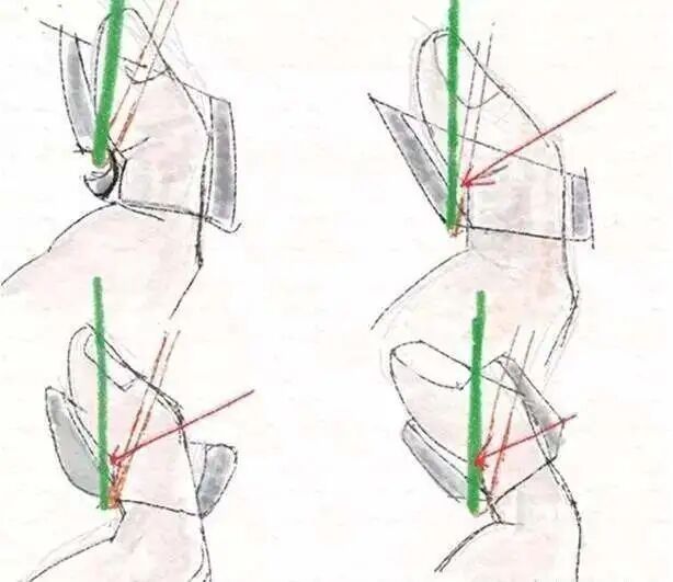 各种扳指的使用示意图,右下这个为清代最为常见的筒形扳指