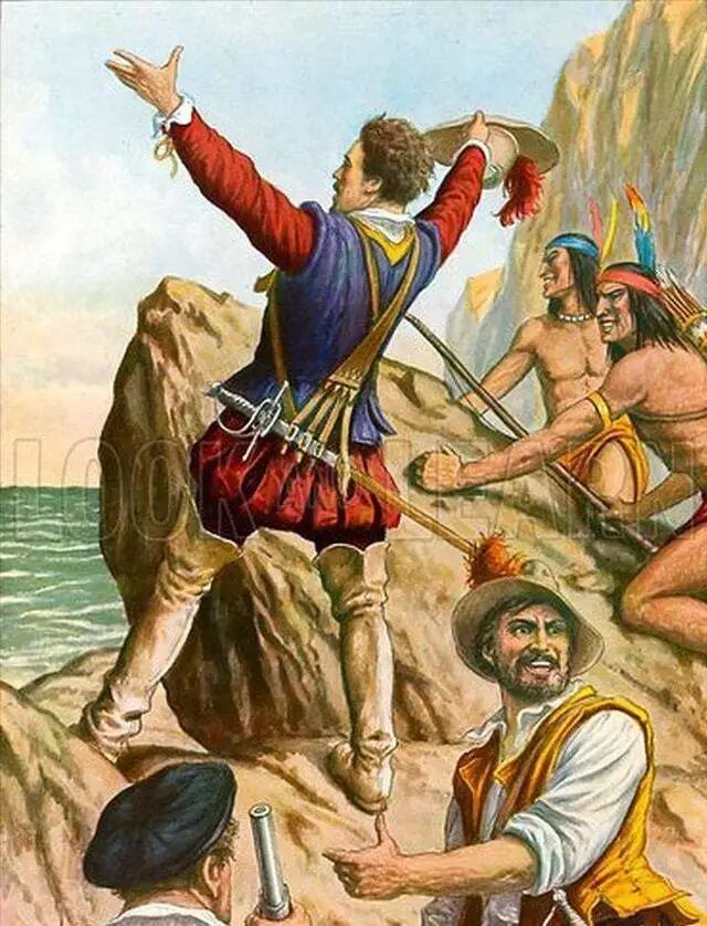 在著名探险者巴斯克·努涅斯·德·巴尔沃亚(下文简称巴尔沃亚)的探险旅程中,就留下了许多印第安人主动袭击探险队,结果探险者们举枪射击一阵后对方便抱头鼠窜四散而逃的记录。比如在前往所谓“南海”(其实是太平洋)的探险过程中,他们便遭遇了一支印第安人的袭击,结果对方闻枪便逃,都以为西班牙人是神灵一般,根本不敢回头反抗,最终被西班牙探险者们全部杀光。