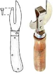 而有意思的是,彼得•杜兰德虽然发明了铁罐头,但他并没有发明用来打开铁罐头的专用工具——开罐器(罐头刀),开罐器要到1858时才被人发明,并于美国取得专利,铁罐头和开罐器这两者的发明时间相差了近50年,那么在此期间的人们是怎么打开坚固的铁罐头的呢?
