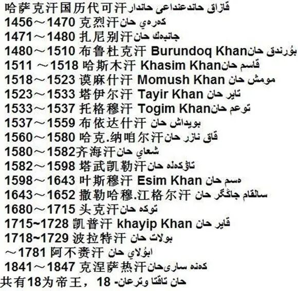哈萨克汗国的汗王世系