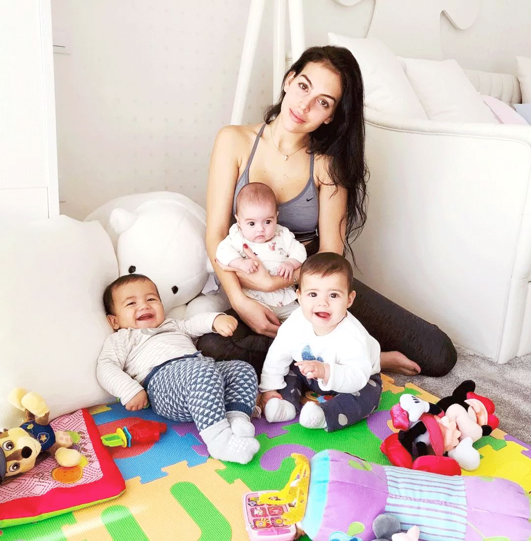 图中有:生母未知的大儿子、疑似代孕出生的龙凤胎和乔治娜的首胎女儿