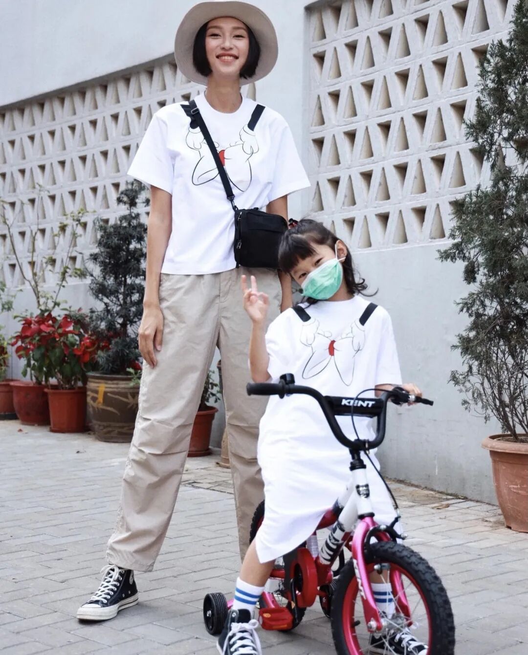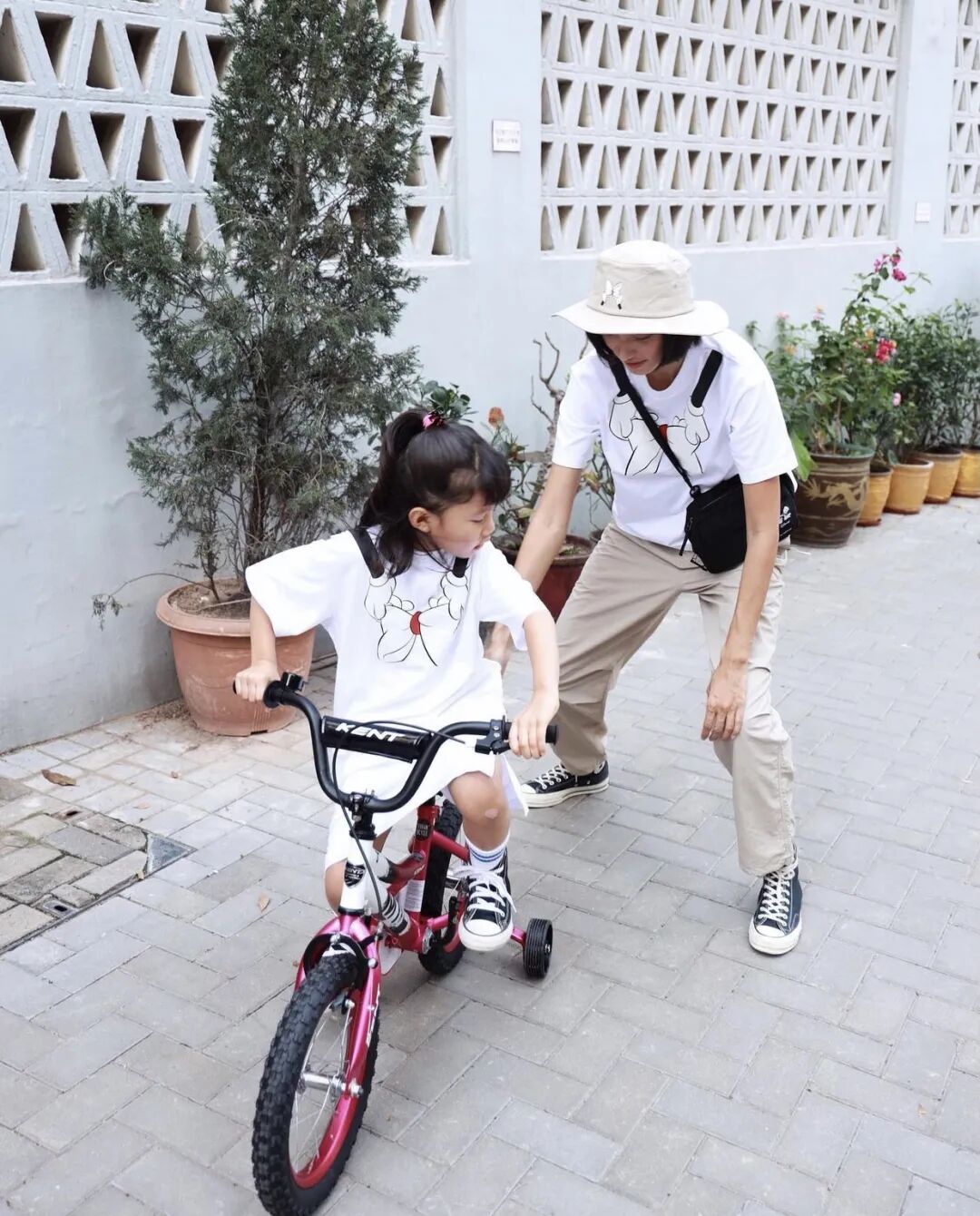 穿亲子装骑单车▼