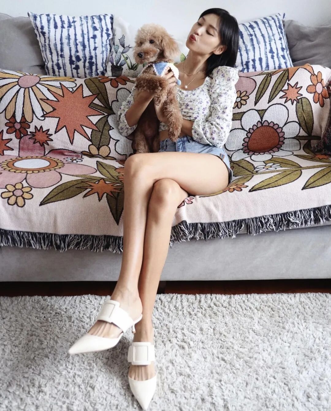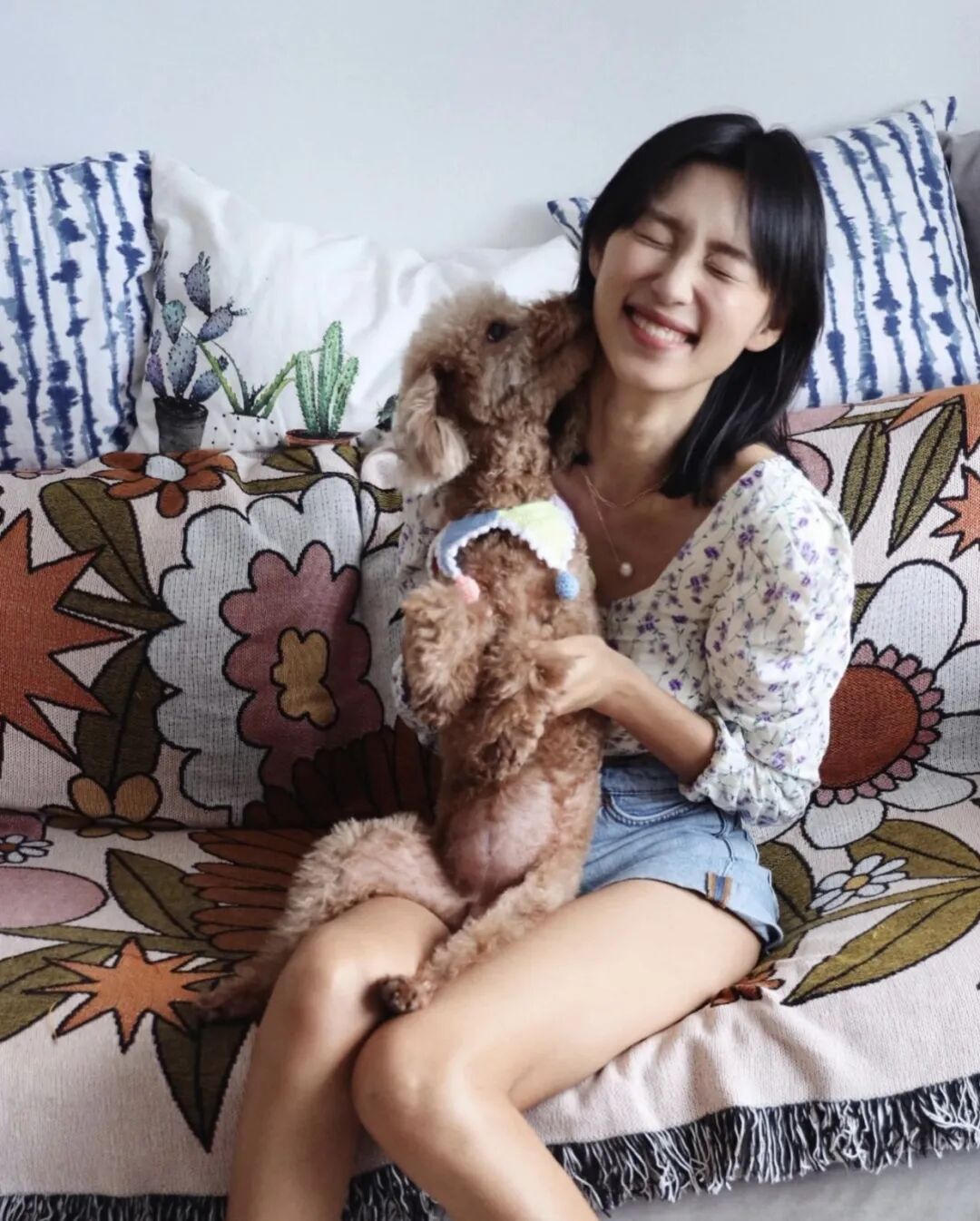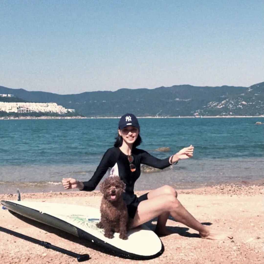 和狗狗合照也不忘秀美腿▼