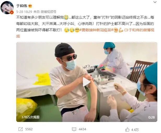 坐在小木马上的于和伟可爱值爆表,而且他也害怕打针。