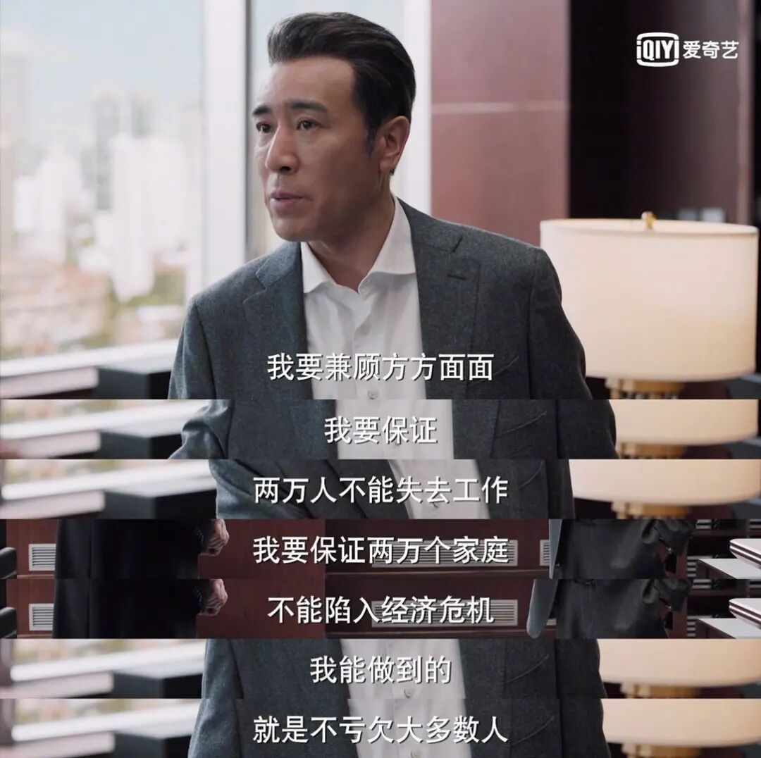 公司遭遇危机,他也会顾全所有人的利益,不能让两万个家庭陷入危机。