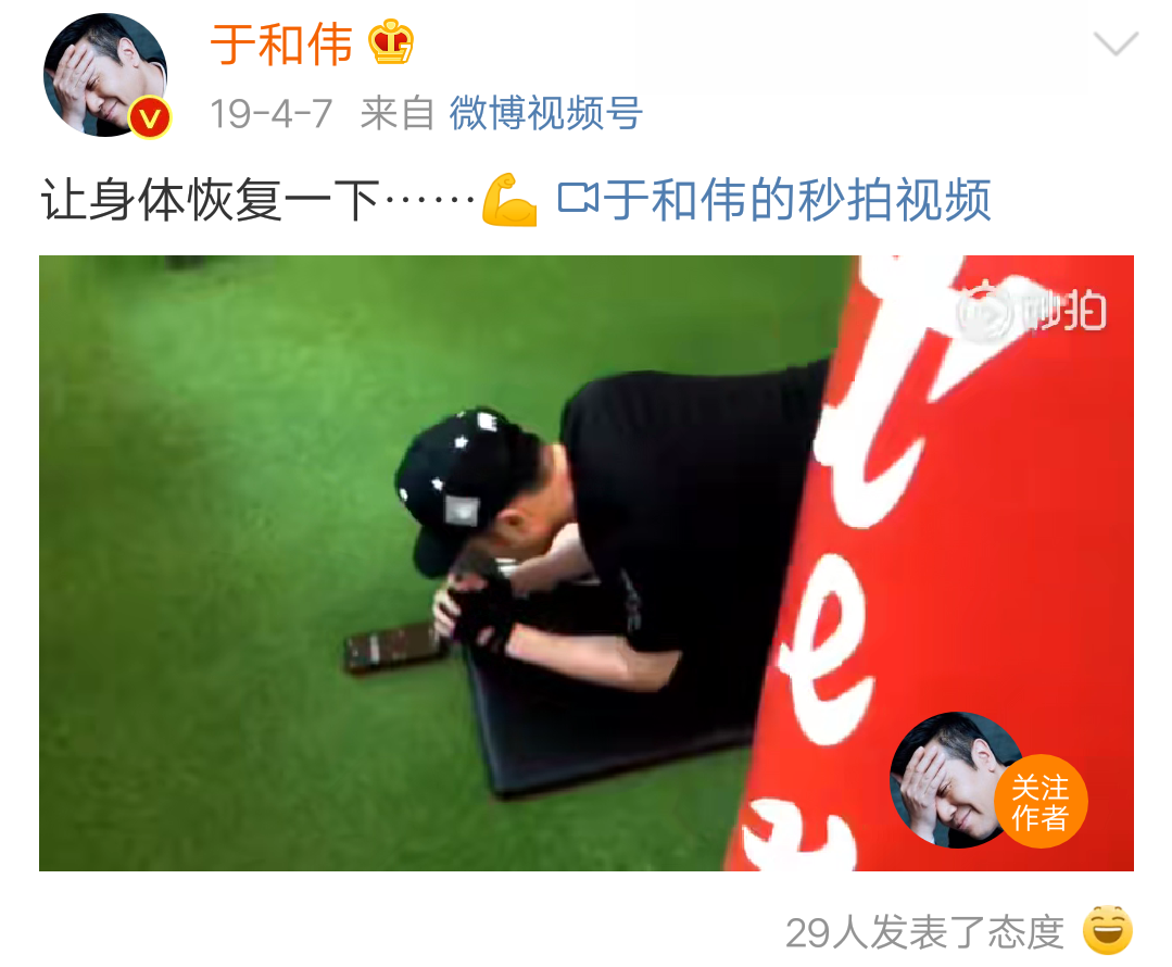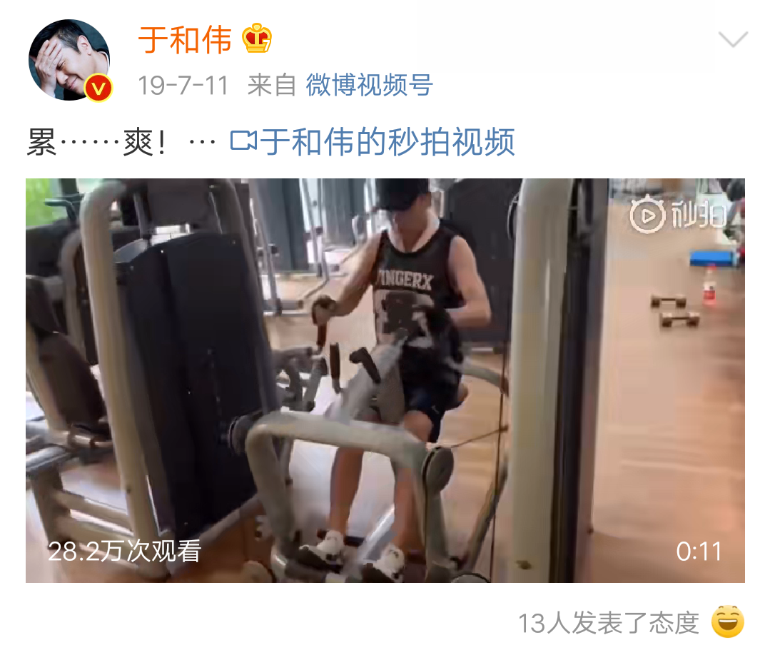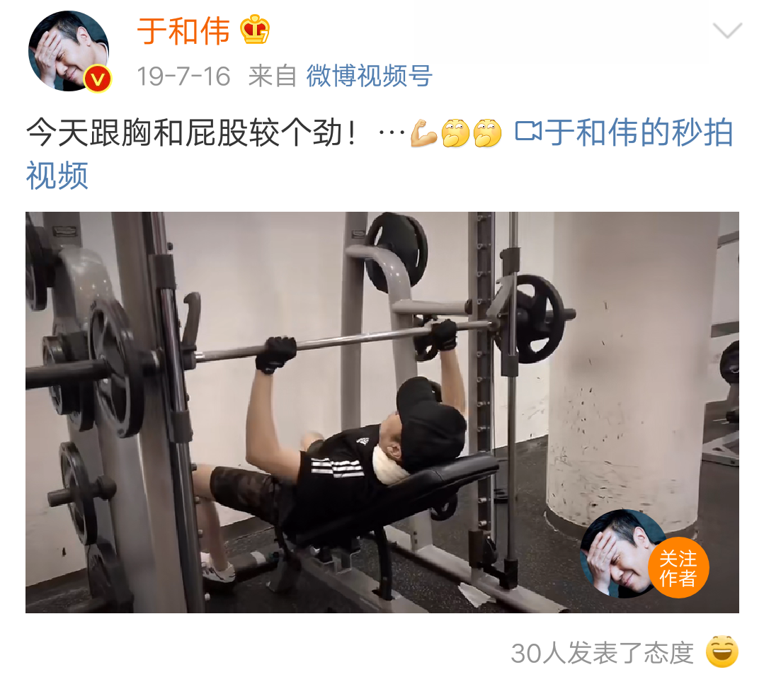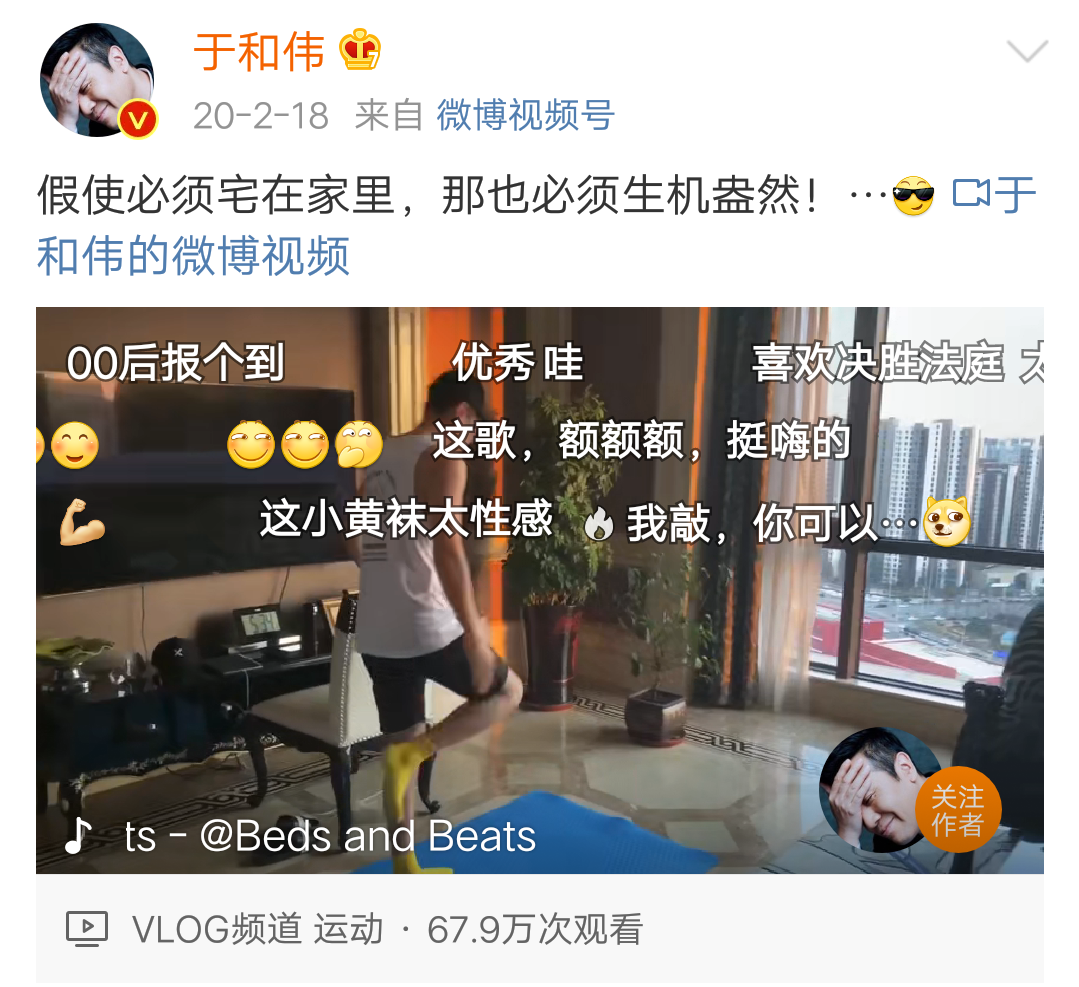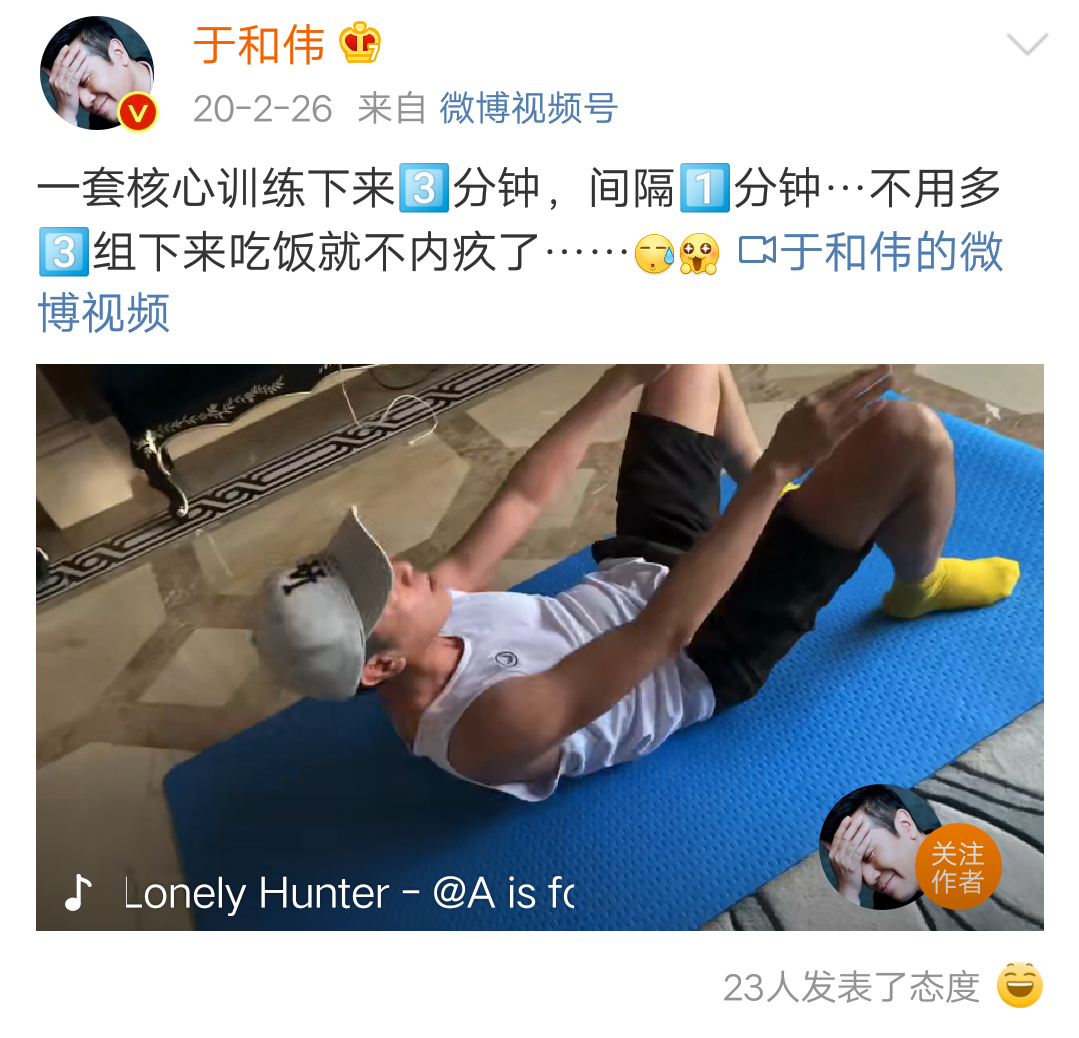疫情在家期间,可是没闲着,经常在微博上分享自己的健身视频。