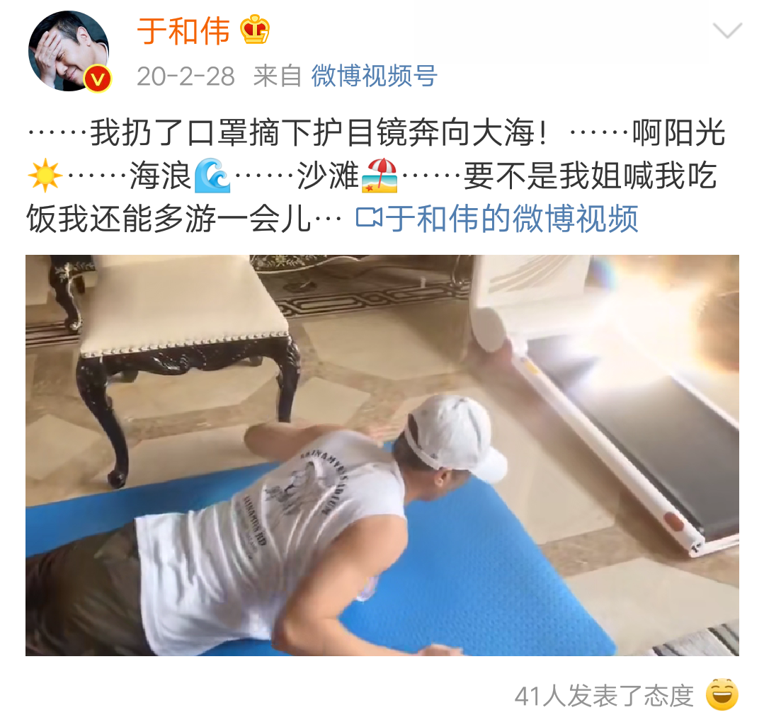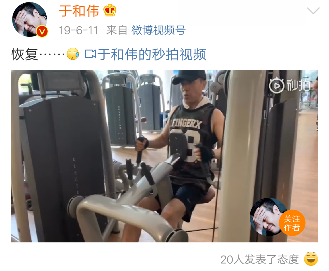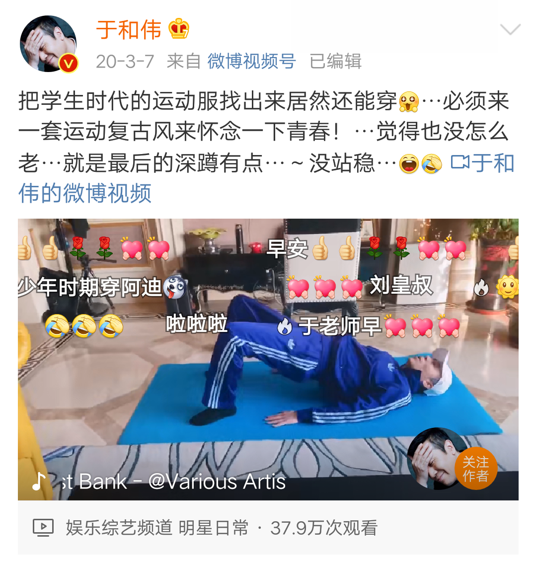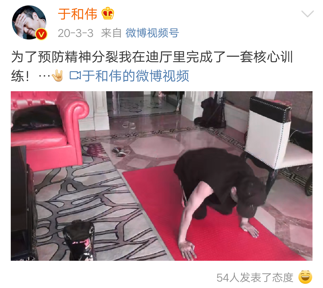 疫情在家期间,可是没闲着,经常在微博上分享自己的健身视频。