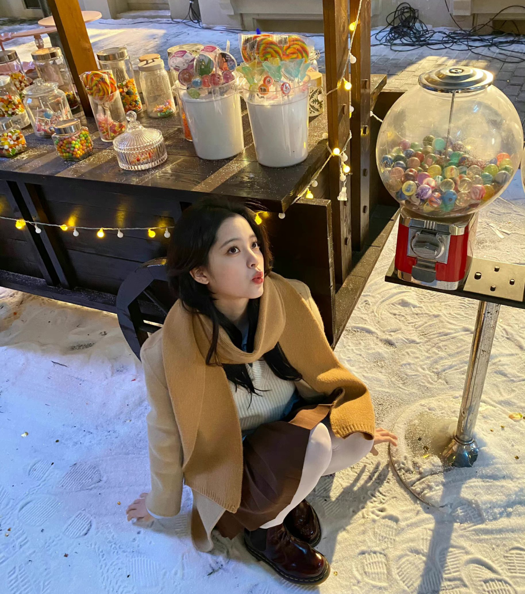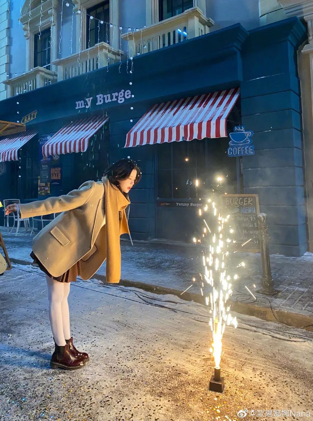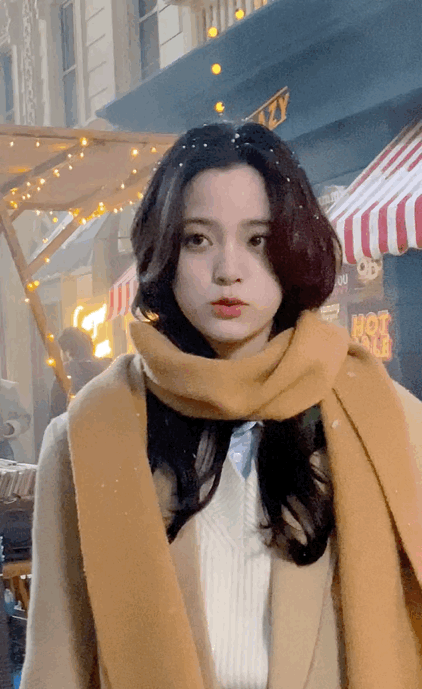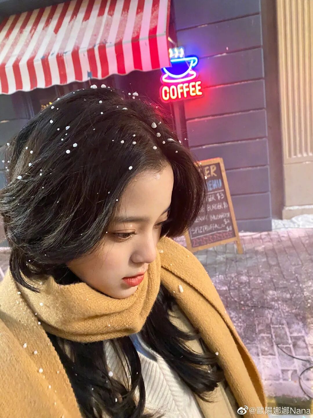 最近,娜比发布了一组雪景写真,时而低头浅笑,时而心动对视。