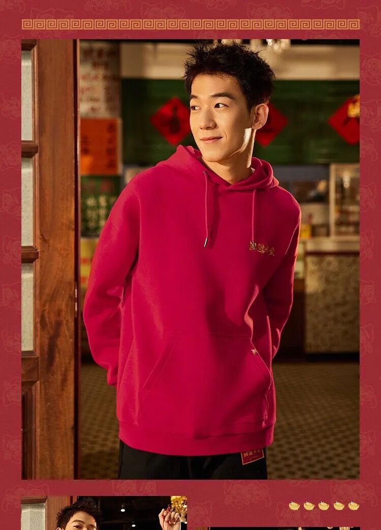 比如说这件连帽卫衣,宽松版型穿出街头活力感;后幅虎持金元宝印花,寓意虎年吉祥如意。