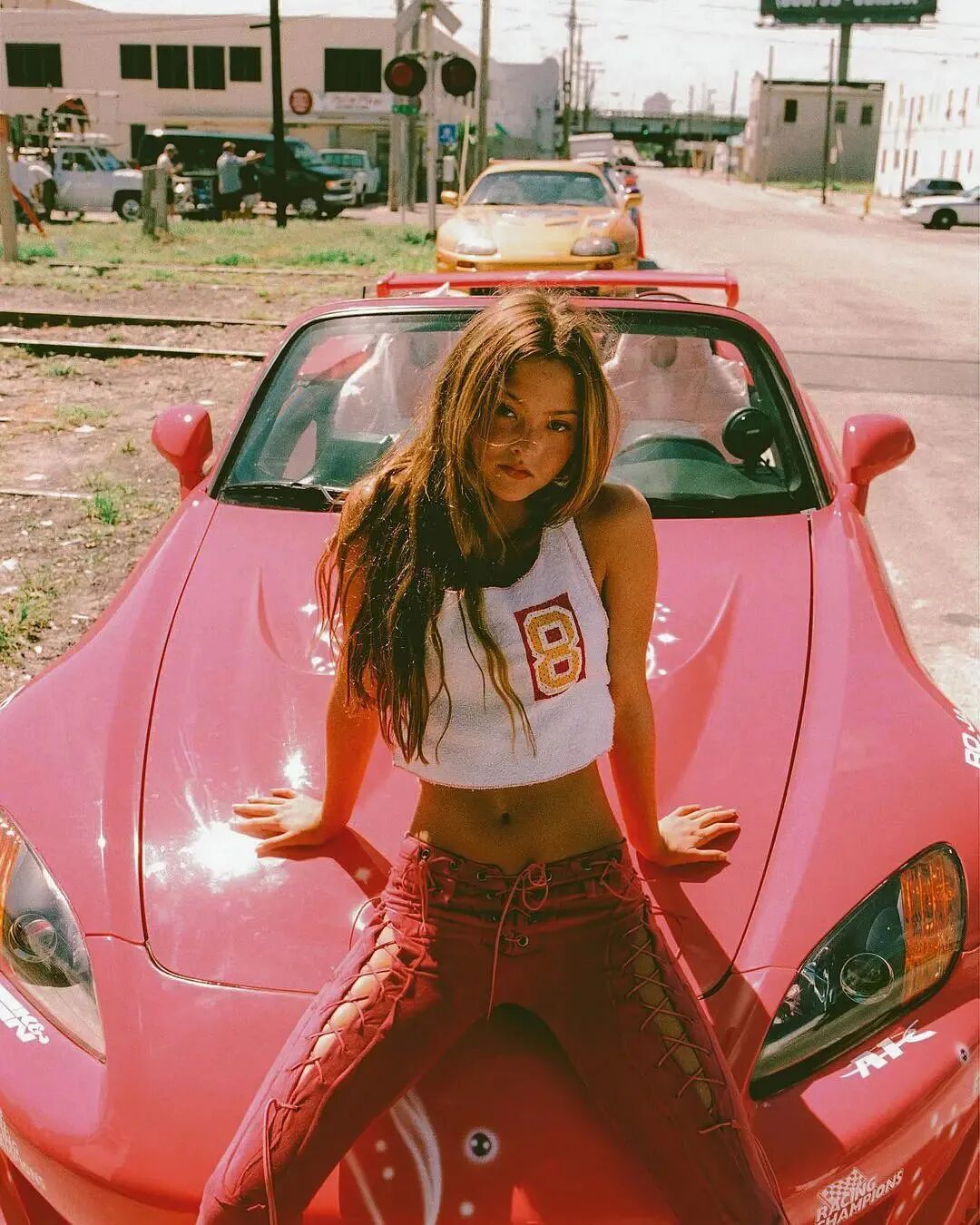 在《速度与激情2》中饰演了开粉色跑车的小辣妹▼