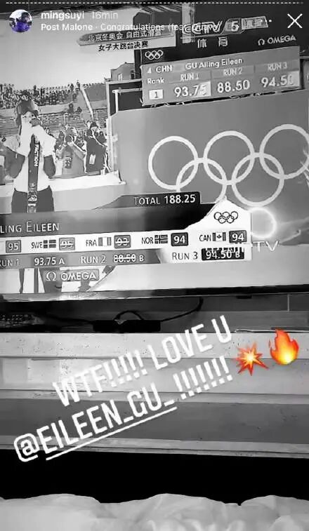 夺金后,苏翊鸣第一时间发IG祝贺她: