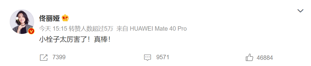 在他拿奖后,很多明星纷纷祝贺小栓子。