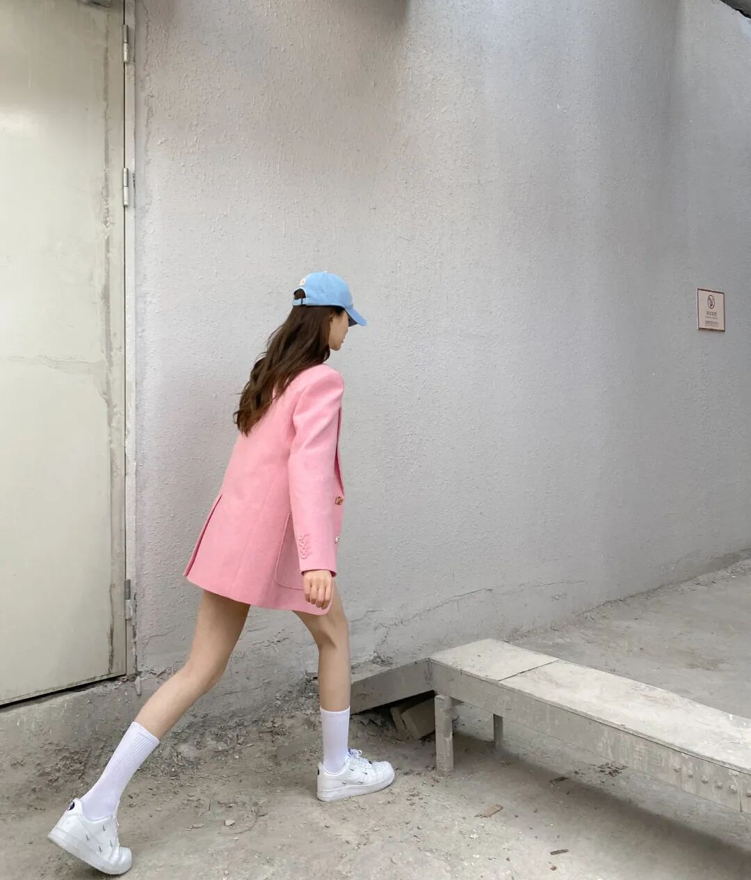 用中性单品的单品来中和掉一些甜美,造型不至于甜到腻。