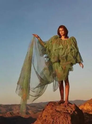 16岁的时候还独自登上法国版《VOGUE》,而她的妈妈首次单人登《Vogue》是 20 岁,也就是说Kaia比妈妈还早了四年。