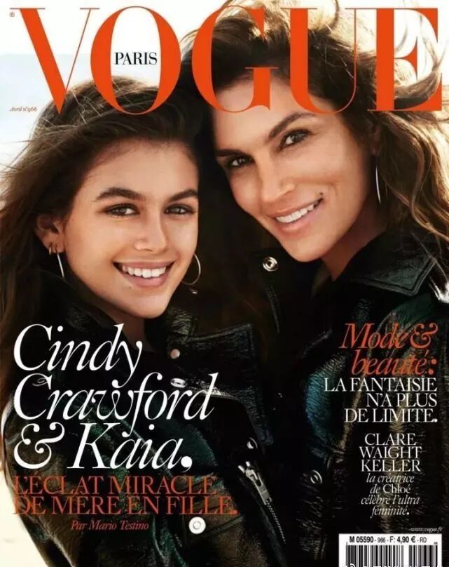 Kaia 就和妈妈一起拍过《Vogue》封面。