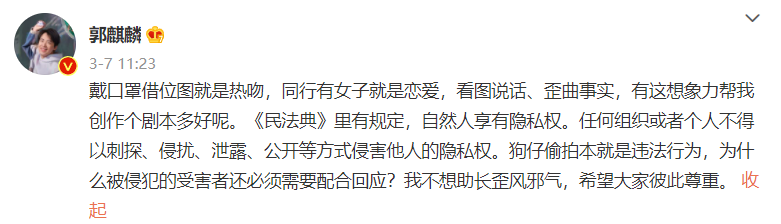郭麒麟态度强硬地搬出了《民法典》,不得不说这一招还蛮有效,房子最后没塌,争议还随之散去了不少......